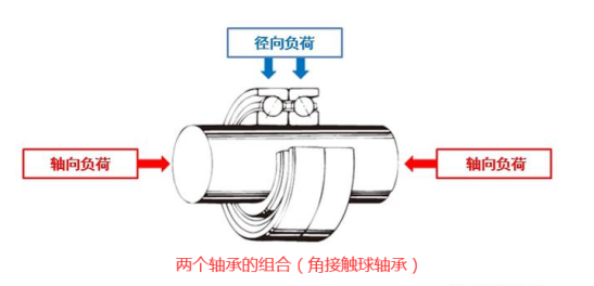 承受较大的双方向轴向负荷时,应组合使用两个以上的轴承或者选择多列轴承。